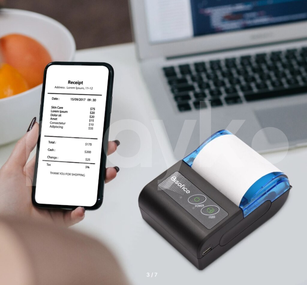 Daşınabilən Thermal çek printer Bluetooth/USB Portable kiçik daşına bilən çek printer .Həm bluetooth həm də usb ilə qoşula bilir.Telefon Konmpyuterdə işlədə bilərsiz. Portable Mini Thermal Printer 2 inch Wireless USB Receipt Bill Ticket Printer with 58mm Print Paper for Restaurant. Портативный мини-термопринтер , 2-дюймовый Беспроводной USB-принтер для квитанций билетов с печатной бумагой 58 мм для ресторана. Color: Black&blue Print Paper Width: 58mm Valid Printing Width: 48mm Resolution: 8dots/mm(203dpi) Print Speed: 70mm/s(Max) Roll Diameter: 40mm(Max) Barcode Type: 1D: UPC-A,UPC-E,EAN13,EAN8,CODE39,CODE93,CODE128,CODABAR,ITF 2D: QR CODE Interface: BT/USB Built-in Lithium Battery: 1500mAh/7.4V Operating System: Compatible with Android, iOS, Windows Working Condition: -5℃~50℃ Storage Condition: -40℃~60℃ Item Size: 10.2 * 7.4 * 4.5cm / 4.0 * 2.9 * 1.8in Package Weight: 309g ➤ Sağda istifadəçinin digər elanına baxın. ➤ Unvan: Bakı ( 28may ,Narimanov ) Sumqayit ➤ Çatdrilma var şəhər içi və ölkədaxili. cek printer ,chek printer ,çek printer ,qebz printeri ,qəbz printeri ,kassa printeri,barkod ,barkod skayner, barcode scaner.
