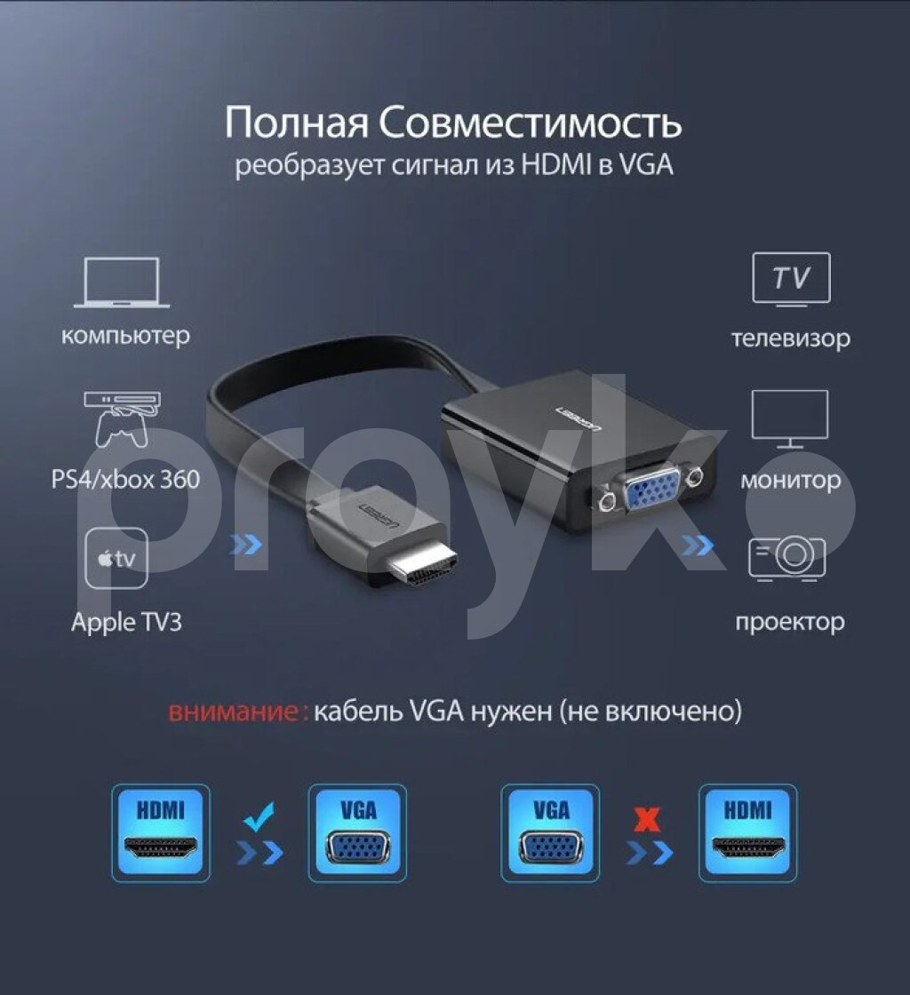UGREEN HDMI to VGA Converter 25cm (Black) MM103 40248