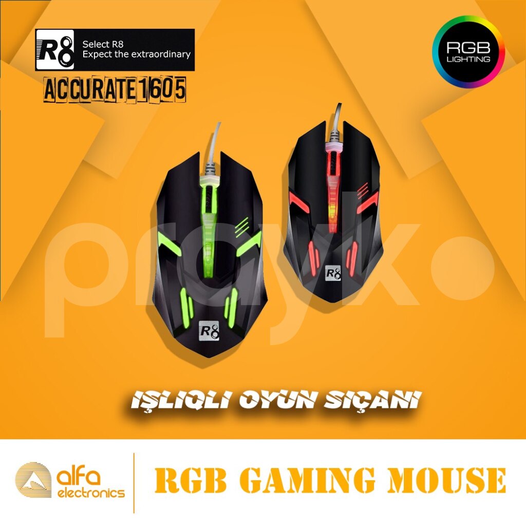 Rgb Gaming Mouse "R8 Magic 1605" işıqlı oyun siçanı-12Azn