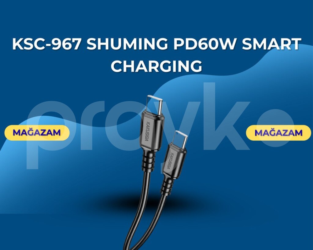 ⚡ KSC-967 SHUMING kabeli ilə cihazlarınızı sürətli və təhlükəsiz şəkildə doldurun. PD60W (Power Delivery) dəstəyi ilə, bu ağıllı Type-C-dən Type-C-yə kabel həm smartfonlar, həm də noutbuklar üçün ideal seçimdir. Gündəlik istifadə üçün etibarlı və davamlıdır.
