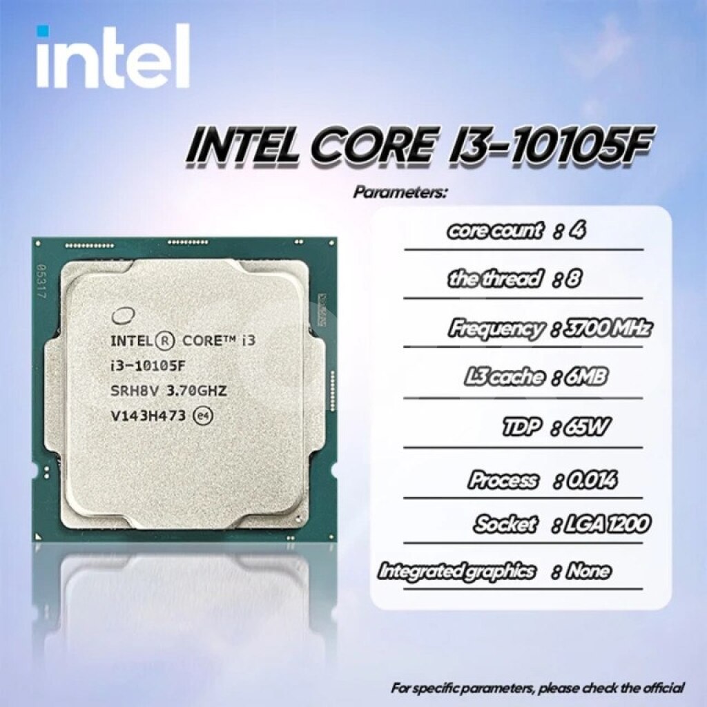 MODEL: Intel® Core™ i3-10105F Processor (6M Cache, up to 4.40 GHz)