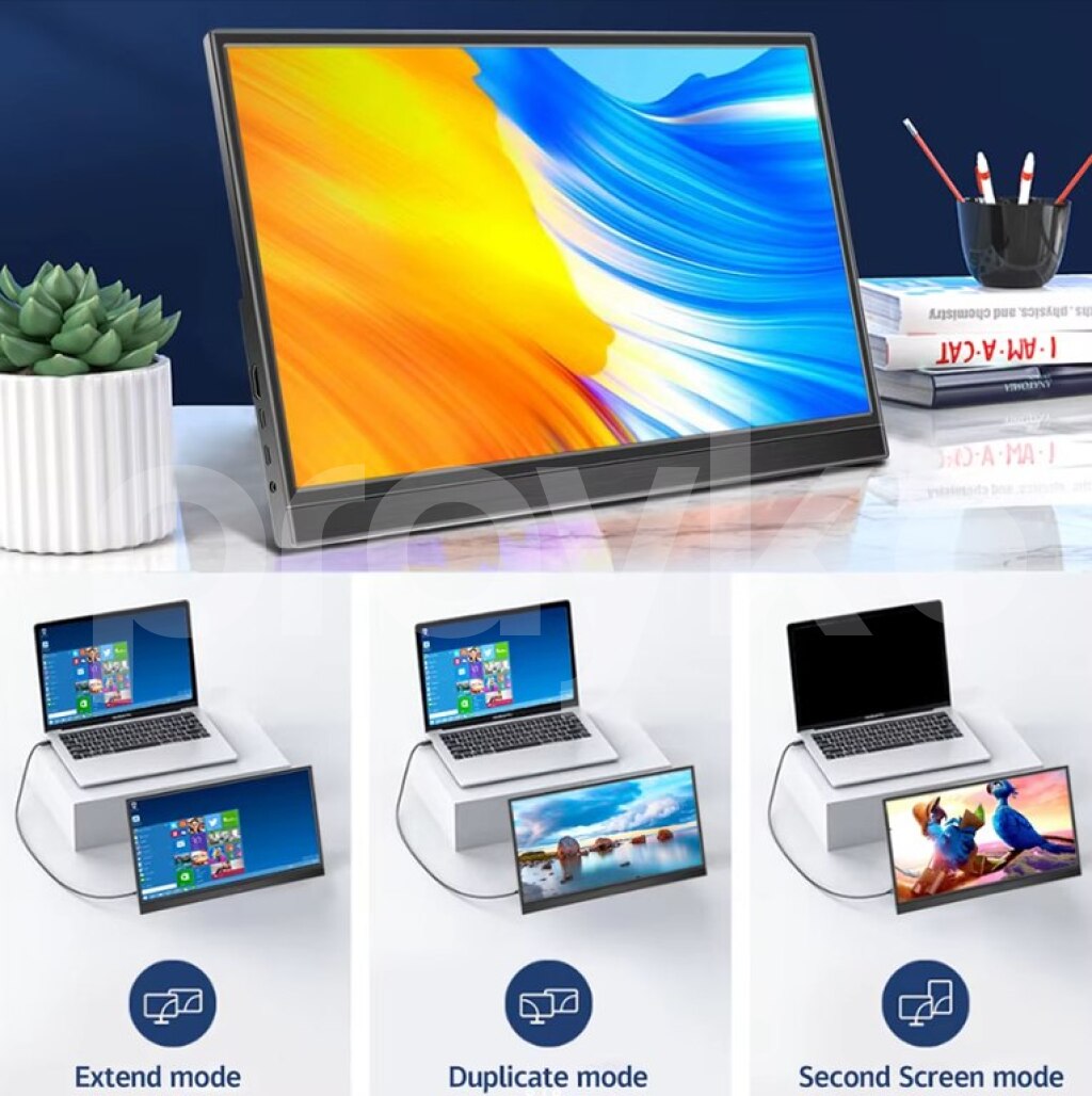 Portable Monitor 16' "Touch Screen" Yüngül rahat daşına bilən və sensor ekran . Ölçüsü 16 inch dir .Telefon Kompyuter Playstation3/4/5 və s qoşmaq olar .Typec veya mini hdmi ilə qoşulur. Touchscreen Portable Monitor 14/15.6/16 inch HD LED Display Laptop Monitor Travel Monitor for Raspberry Pi/Laptop/PS3/PS4 Xbox. Портативный сенсорный монитор 16" Features: 1. The monitor is compatible with view mirroring, extended, and portrait models. 2. Dual type-c full-featured ports - plug and play. (Single USB-C cable for both power and signal input) 3. You can connect a mouse or a keyboard through the USB-C OTG port. 4. External speakers can be connected through the 3.5mm interface. 5. Can be hung on the wall via the 75mm x 75mm VESA bracket on the back 6. No driver required 7. Compatible thunderbolts type c phone Samsung/DEX, Huawei/EMUI, smartisan/TNT for PC desktop mode. Product parameters: Screen size: 16 inch touch monitor Panel type: IPS Resolution: 1920 x 1080/1920X1200 Screen ratio: 16:9/16:10 Viewing angle: 178° Brightness: 300cd / m Contrast: 1000:1 Power supply: USB 5V 1.5-3A Speaker: Built-in dual stereo speakers. Multi-interface: type-c input 1/ type-c input 2/ headphone jack/ HDMI/type-c OTG